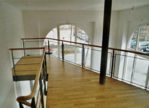 FUGGERSTRASSE 1 FUGGERSTRASSE 1 Vom ehemaligen Lebensmittelladen zum attraktiven Marketing-Büro auf mehreren Ebenen. Fuggerstr. 1 Blick zur Kueche Fuggerstr. 1 Galerie Arbeitsbereich Fuggerstr. 1 Ansicht Galerie Fuggerstr. 1 Handlauf Stahltreppe Fuggerstr. 1 Detail Handlauf